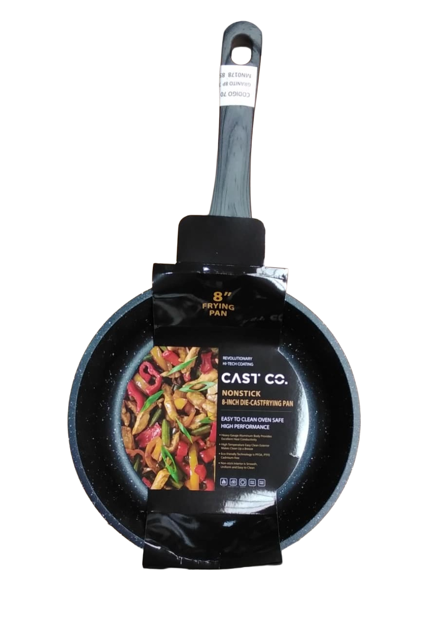 Este sartén de 8 pulgadas es ideal para preparar porciones individuales, desayunos o recetas rápidas con total comodidad. Su diseño compacto y moderno en color negro con mango gris combina funcionalidad y estilo, convirtiéndolo en un utensilio práctico para el uso diario en cualquier cocina.